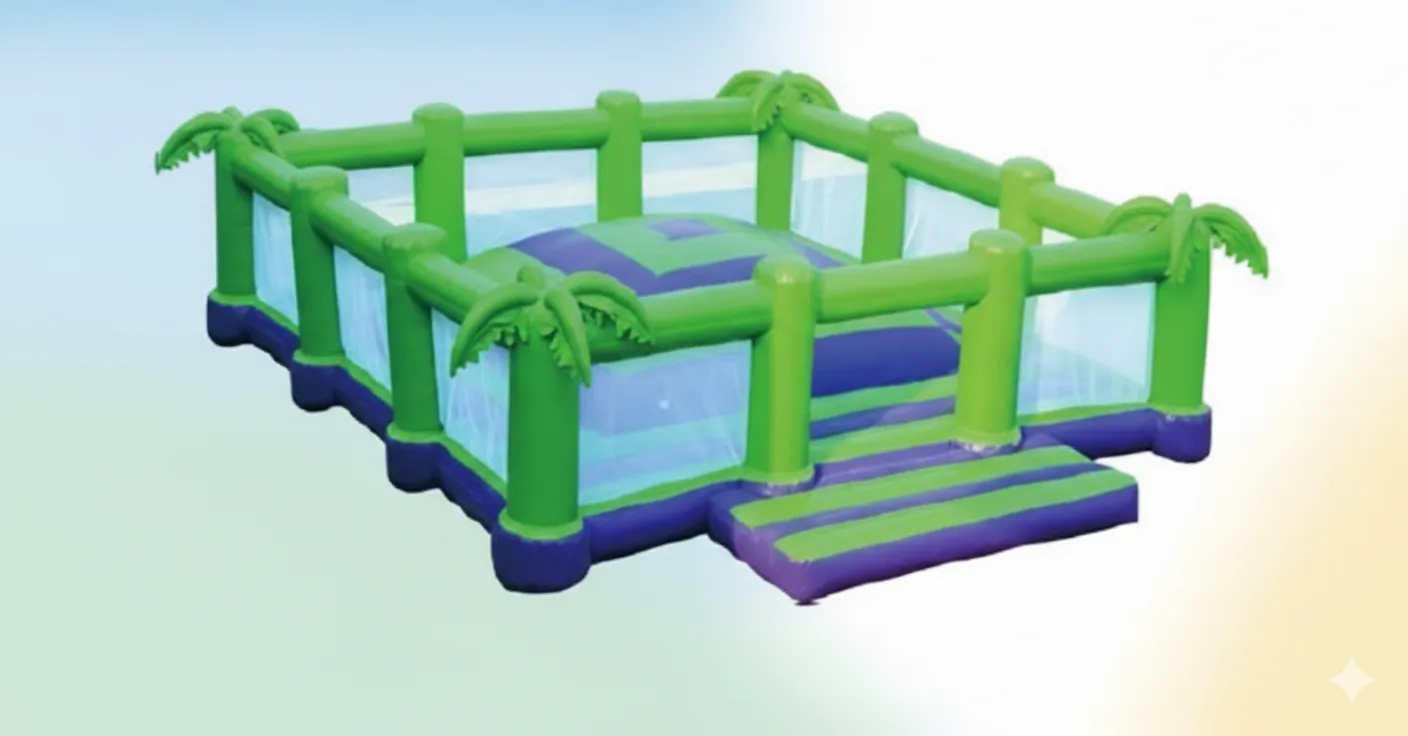 Das Design in Grün und Blau mit den dekorativen Palmen an den vier Ecken macht das Wabbelbergli zum optischen Highlight. Besonders praktisch für Eltern und Betreuer: Die niedrigen Seitenwände sind rundum mit transparenten Sicherheitsnetzen ausgestattet. So ist eine optimale Belüftung garantiert und Sie haben den Nachwuchs aus jeder Perspektive immer perfekt im Blick. Durch den flachen Einstieg können auch schon kleinere Kinder problemlos mitmachen.